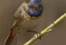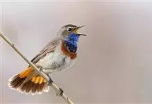 蓝点颏亦称“蓝喉歌鸲”,通称蓝靛颏儿。身体大小和麻雀相似,体长12-13厘米,体重17-18克。头部、上体主要为土褐色。眉纹白色。尾羽黑褐色,基部栗红色。颏部、喉部辉蓝色,下面有黑色横纹。下体白色。…全部>>