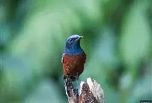 蓝头矶鸫为鹟科矶鸫属的鸟类,是一种候鸟,俗名臭皮翠、白喉叽鸫、白喉石鸫、葫芦翠、虎皮翠。全长19厘米。自额至后颈及翅上的小覆羽均钴蓝色。腰和尾上覆羽浓栗。内侧飞羽有一白色块斑。喉部中央有一大型白斑。…全部>>