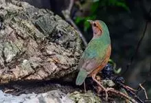 栗头八色鸫又叫锅巴雀,体长为24-26厘米,体重100-135克,是雀形目八色鸫科的鸟类。体型圆胖,尾短,腿长,常在森林底层或低植被中找食无脊椎动物。叫声简单哀婉。…全部>>