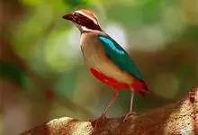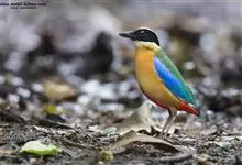蓝翅八色鸫是雀形目八色鸫科的鸟类。体长17-20厘米,体重类约48-70克,体型圆胖,尾短,腿长,以身体具有红、绿、蓝、白、黑、黄、褐、栗等鲜艳夺目,丰富艳丽的色彩而得名,是很有观赏价值的鸟类。主要…全部>>