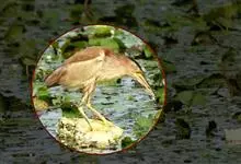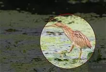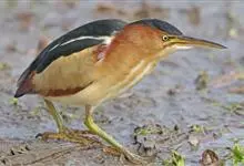 紫背苇鳽是鹭科、苇鳽属动物,为涉禽,体长约33厘米。头顶黑色,后头至尾上覆羽暗栗褐色;翅上覆羽橄榄黄色;下体浅棕黄色。多生活于水库和山脚边的稻田、芦苇丛、滩涂及沼泽草地,在西藏见于海拔2300米的农田,…全部>>