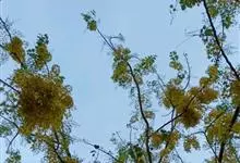 腊肠树:是豆科腊肠树属植物。落叶乔木,高可达15米;枝细长;树皮灰色,老时粗糙,暗褐色。叶长30-40厘米,小叶对生,薄革质,阔卵形,卵形或长圆形,边全缘,幼嫩时两面被微柔毛,老时无毛;叶脉纤细,…全部>>