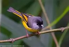 金胸雀鹛是莺科、雀鹛属小型鸟类,体长10-11厘米。头黑色,头顶中央有一道白色中央冠纹,颊和耳羽亦为白色,在黑色的头部极为醒目。上体深灰沾绿。两翅黑色,外侧飞羽有黄色外缘和白色端斑;尾凸状、黑色。…全部>>