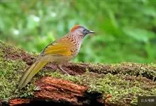 红头噪鹛中型鸟类,体长22~28厘米。头顶棕红色,眼先、脸、颏、喉黑色,上体橄榄色或棕橄榄褐色,外侧飞羽金黄色,尾羽基部亦为金黄色,下体多为暗橄榄褐色。该种和赤尾噪鹛较为相似,…全部>>