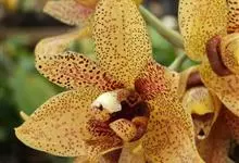 湿唇兰 Pfitz.):茎粗壮,长被宿存的叶鞘所包,上部具3-5枚叶。叶长圆形或倒卵状长圆形。花序1-6个,长达35厘米;疏生5-8朵花;花大,稍肉质,萼片和花瓣黄色带暗紫色斑点;萼片近相似,…全部>>
