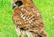 栗鸮:是鸟纲、草鸮科的猫头鹰。体长约29厘米,体重311-360克。是一种中等体型的红褐色鸮。其心形脸庞及时而竖起的“耳朵”与仓鸮甚似。上体红褐而具黑白点斑,下体皮黄偏粉具黑点,脸近粉色。虹膜深褐色,…全部>>