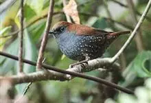 栗头地莺:小型鸣禽。体长约10厘米。体型纤细,是中国体型最小的鸟类之一;喙细尖,上喙先端多有缺刻;翅短圆;尾短至中等;腿短而细。羽色以灰、褐及橄榄绿为主,雌雄羽色相似。栖息于灌木或稀疏林内,…全部>>