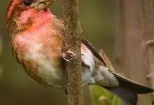 酒红朱雀小型鸟类,体长13~15厘米。雄鸟通体深红色,头部深朱红或棕红色,下背和腰玫瑰红色,眉纹粉红色而具丝绢光泽。两翅和尾黑褐或灰褐色、具暗红色狭缘,内侧两枚三级飞羽具淡粉红色先端。…全部>>