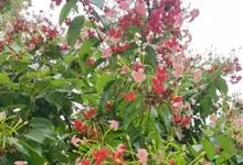 使君子 Jongkind)是使君子科、使君子属攀援灌木,叶对生,椭圆形,两面均被灰白色柔毛。穗状花序,倒挂下垂。花期夏秋。果有五棱,熟时黑色,种子白色。分布于印度、缅甸、菲律宾和中国。喜温润,深根性,…全部>>