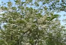 稠李是蔷薇科、李属的乔木。株高达15米;幼枝被绒毛,冬芽无毛或鳞片边缘有睫毛;叶椭圆形、长圆形或长圆状倒卵形,基部圆或宽楔形,有不规则锐锯齿,花序梗和花梗无毛,萼筒钟状,萼片三角状卵形,花瓣白色,…全部>>