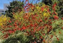 凤凰木 Raf.) ,别名火树、红花楹、凤凰花、火凤凰、金凤花、红楹,是豆科凤凰木属高大落叶乔木,树皮灰褐色,粗糙。二回偶数羽状复叶互生,矩圆形,两面均被柔毛。伞房式总状花序,花大,花瓣5枚,圆形,…全部>>