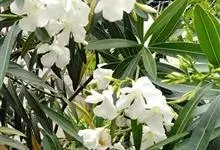 白花夹竹桃是夹竹桃科、夹竹桃属植物夹竹桃的栽培品种。常绿直立大灌木,枝条灰绿色;嫩枝条具稜,被微毛,老时毛脱落。叶3-4枚轮生,下枝为对生,叶面深绿,叶背浅绿色;侧脉纤细平行与中脉成直角;叶柄扁平,…全部>>