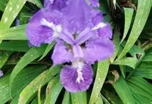 鸢尾,又名老鸹蒜、蛤蟆七、扁竹花、紫蝴蝶、蓝蝴蝶、屋顶鸢尾等,是鸢尾科鸢尾属一种多年生草本植物。鸢尾根状茎粗壮,二歧分枝;叶基生,黄绿色,宽剑形;花茎光滑,苞片2-3枚,绿色,草质,边缘膜质,色淡,…全部>>