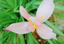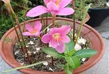 小韭兰学名韭菜莲又名风雨花、菖蒲莲、红玉帘和旱水仙,多年生草本,鳞茎卵球形,基生叶常数枚簇生,线形,扁平,花单生于花茎顶端,下有佛焰苞状总苞,花玫瑰红色或粉红色,蒴果近球形,种子黑色,花期夏秋。韭莲…全部>>