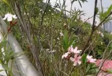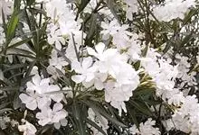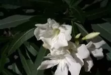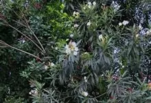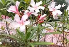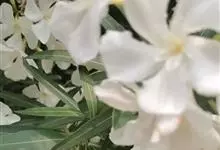 白花夹竹桃是夹竹桃科、夹竹桃属植物夹竹桃的栽培品种。常绿直立大灌木,枝条灰绿色;嫩枝条具稜,被微毛,老时毛脱落。叶3-4枚轮生,下枝为对生,叶面深绿,叶背浅绿色;侧脉纤细平行与中脉成直角;叶柄扁平,…全部>>