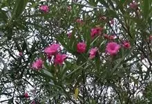 夹竹桃,又名红花夹竹桃、欧洲夹竹桃,是夹竹桃科夹竹桃属的一种常绿直立大灌木,枝条灰绿色,含水液。叶披针形,3叶轮生。聚伞花序顶生,花冠粉红至深红色,花冠漏斗状,有特殊香味。蓇葖果,圆柱形。种子长圆形,…全部>>