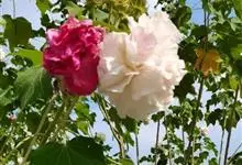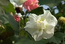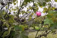 木芙蓉,锦葵科木槿属落叶灌木或小乔木。小枝上有细绒毛;叶片为卵状心形,托叶为披针形,常早落;花单生,花萼为钟形,花冠初为白色或淡红色,后逐渐变为深红色;果实为扁球形,有淡黄色的毛附着。花期8到10月。…全部>>