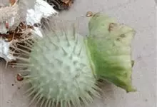 曼陀罗,茄科曼陀罗属一年生大型草本植物,全株光滑。有臭气;叶呈广卯形,边缘具不规则波状浅齿裂;花单生于枝杖间或叶腋,直立,有短梗;花萼是筒状裂片三角形,颜色为白色或淡紫色;果实为蒴果卵状,…全部>>