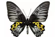 金裳凤蝶是凤蝶科、裳凤蝶属的动物。金裳凤蝶身体呈黑色,头、颈和胸侧有红毛,腹部有黑黄两色相间条纹,雄蝶前翅黑色,具黑天鹅绒光泽,各脉两侧灰白色,后翅金黄色,各室外缘有等腰三角形黑斑1枚,斑内侧有晕,…全部>>