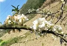 欧李,蔷薇科李属落叶灌木植物,高1.5米。树皮灰褐色,小枝被柔毛;叶互生长圆形或椭圆状披针形;花与叶同时开放,单生或并生,花瓣白色或粉红色;核果近球形,熟时鲜红色或橘黄色。花期4-5月,果期5-6月。…全部>>