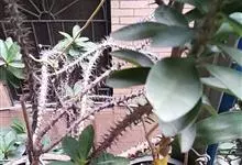 虎刺梅:别称铁海棠,是蔓生灌木植物。茎多分枝,长60-100厘米,直径5-10毫米,具纵棱,密生硬而尖的锥状刺,刺长1-1.5厘米,直径0.5-1.0 毫米,常呈3-5列排列于棱脊上,呈旋转。叶互生…全部>>