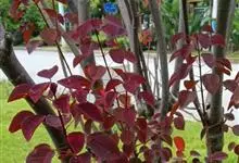 紫锦木是大戟科、大戟属的常绿乔木。叶圆卵形,主脉于两面明显,侧脉数对,边缘全缘,两面红色;花序生于二歧分枝的顶端,总苞阔钟状,裂片呈三角形,边缘具毛,腺体深绿色呈半圆形,…全部>>