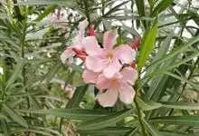 夹竹桃,又名红花夹竹桃、欧洲夹竹桃,是夹竹桃科夹竹桃属的一种常绿直立大灌木,枝条灰绿色,含水液。叶披针形,3叶轮生。聚伞花序顶生,花冠粉红至深红色,花冠漏斗状,有特殊香味。蓇葖果,圆柱形。种子长圆形,…全部>>
