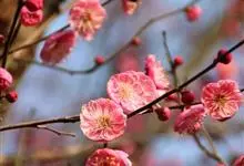 梅:蔷薇科,木本植物。形态多样,通常为小乔木,高4-10米,树皮紫红色,叶片呈弧型或椭圆形,叶边常具小锐锯齿,灰绿色。花单生或有时2朵同生于1芽内,直径2-2.5厘米,香味浓,先于叶开放;花色丰富,…全部>>