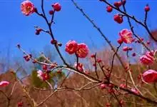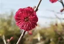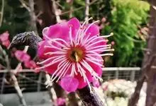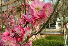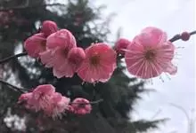 宫粉梅 Rehd.)是蔷薇科、李属植物,梅花品系中真梅系直枝梅类宫粉型,其花复瓣至重瓣,呈或深或浅的红色。落叶乔木,高达10米。树干褐紫色,有纵驳纹,小枝细而无毛,多为绿色。叶广卵形至卵形,…全部>>