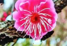 宫粉梅 Rehd.)是蔷薇科、李属植物,梅花品系中真梅系直枝梅类宫粉型,其花复瓣至重瓣,呈或深或浅的红色。落叶乔木,高达10米。树干褐紫色,有纵驳纹,小枝细而无毛,多为绿色。叶广卵形至卵形,…全部>>