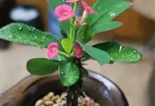 铁海棠为大戟科大戟属蔓生灌木植物;茎多分枝,具纵棱,呈旋转状;叶互生,通常集中于嫩枝上;每个花序基部边缘具微小的红色尖头;苞叶先端圆且具小尖头,无柄,上面鲜红色,下面淡红色;苞片丝状;子房光滑无毛,…全部>>