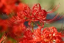 石蒜[学名:Lycoris radiata Herb.],是石蒜科石蒜属的多年生草本植物,别名彼岸花、红花石蒜、死人花、蟑螂花、龙爪花等。石蒜的叶狭带状,中间有粉绿色带,秋季出叶。伞形花序,花鲜红色。…全部>>