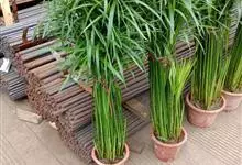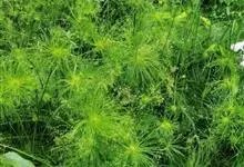 纸莎草是莎草科、莎草属的植物,具有粗壮的根状茎,高达2-3米,茎秆簇生,粗壮,直立,钝三棱形。叶退化呈鞘状,茎秆顶端着生总苞片,呈伞状簇生,总苞片叶状,披针形,顶生花序伞梗极多,细长下垂。瘦果灰褐色,…全部>>