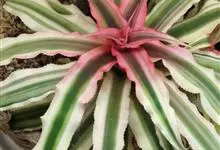 彩叶凤梨 L.B.Sm.) 凤梨科多年生常绿草本。株高25-30厘米,茎短。叶革质,带状,常基生,莲座式排列,叶缘有锯齿。花两性,少单性,辐射对称或稍两侧对称,花序为顶生的穗状花序。…全部>>