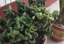 麒麟掌,是大戟科大戟属多年生植物。为金刚纂的带化变异变种。麒麟掌的株乳汁丰富;它的茎圆柱状,上部多分枝,绿色;叶互生,稀少,常生于嫩枝顶端脊上,倒卵形、倒卵状长圆形或匙形,顶端钝圆,具小凸尖,全缘,…全部>>