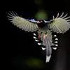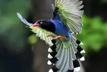 台湾蓝鹊:体长64至65厘米,翼展18至21厘米,尾长约40厘米,尾羽长占了总体长的三分之二。头、脸、颈、喉、胸都是黑色,黄色的眼珠包围黑色的瞳孔,鲜红色的鸟喙、双脚,…全部>>