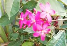 变叶珊瑚花,是大戟科麻风树属常绿灌木。变叶珊瑚花单叶互生,倒阔披针形,叶面为浓绿色,叶背为紫绿色,叶柄具茸毛,叶面平滑,常丛生于枝条顶端;花单性,雌雄同株,花冠红色或粉红色,雌、雄花不同时开放;具乳汁,…全部>>