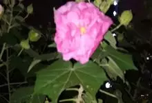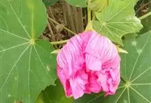 木芙蓉,锦葵科木槿属落叶灌木或小乔木。小枝上有细绒毛;叶片为卵状心形,托叶为披针形,常早落;花单生,花萼为钟形,花冠初为白色或淡红色,后逐渐变为深红色;果实为扁球形,有淡黄色的毛附着。花期8到10月。…全部>>