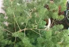 蓬莱松是天门冬科、天门冬属多年生丛生草本植物。宿存,圆柱形肉质根,纵截面为绿色和表面灰色。植株高可达3米。茎呈圆柱形或近四边形,底部木质化,具有灰色或灰褐色。幼嫩的茎在每个节上都被紫绿色鳞片包,…全部>>