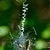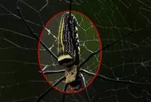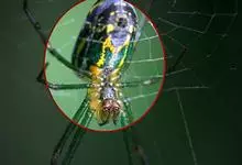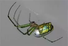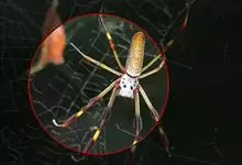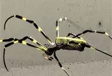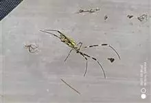 棒络新妇,是蜘蛛目肖蛸科络新妇属节肢动物。雄蛛体长约6毫米,背甲褐色,具黑色纵斑;步足黑色,有橙色环纹;腹部筒形、褐色,有黄斑;雌蛛体长约21毫米,背甲黑色,有大量银色长毛;触肢黄色,步足黑色,…全部>>
