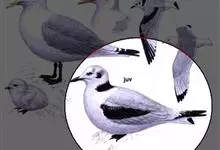 三趾鸥,中型水鸟,体长38~47厘米。夏羽头、颈和翕前部白色。背、翅上覆羽和腰灰色。肩灰色,羽缘和尖端白色。尾上覆羽和尾白色。冬羽和夏羽基本相似,但头顶和枕淡灰色,头顶有不明显的灰色纵纹。…全部>>