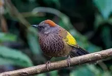 蓝翅噪鹛:噪鹛科、彩翼噪鹛属动物。中型鸟类,体长22-25厘米。上体棕橄榄褐色密被黑色鳞状斑,眼蓝白色,眼上有一长而宽阔的黑色眉纹,从眼先直到颈侧。下体棕褐色被黑色鳞状斑;尾上和尾上覆羽栗色,…全部>>