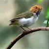 棕脸鹟莺:体长10厘米,是一种色彩亮丽而有特色的莺鸟。头栗色,具黑色侧冠纹。上体绿,腰黄色。下体白,颏及喉杂黑色点斑,上胸沾黄。与栗头鹟莺的区别在头侧栗色,白色眼圈不显著且无翼斑。…全部>>