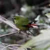 火尾绿鹛是莺科、绿鹛属小型鸟类,体长11-14厘米。上体绿色,头顶至枕具黑色鳞状斑,眼先和眼后黑色,眉纹黄绿色。两翅黑色具黄色和红色翅斑及白色端斑,极为醒目。中央一对尾羽绿色,外侧尾羽鲜红色。…全部>>