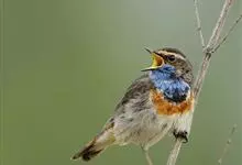 蓝点颏亦称“蓝喉歌鸲”,通称蓝靛颏儿。身体大小和麻雀相似,体长12-13厘米,体重17-18克。头部、上体主要为土褐色。眉纹白色。尾羽黑褐色,基部栗红色。颏部、喉部辉蓝色,下面有黑色横纹。下体白色。…全部>>