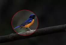棕腹大仙鹟:体重24-28克,体长15-17厘米,是一种小型的色彩亮丽的鹟。雄鸟上体深蓝,下体棕色,脸黑,额、颈侧小块斑、翼角及腰部亮丽闪辉蓝色。与棕腹仙鹟易混淆,区别在色彩较暗。雌鸟灰褐,…全部>>