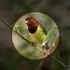 棕脸鹟莺:体长10厘米,是一种色彩亮丽而有特色的莺鸟。头栗色,具黑色侧冠纹。上体绿,腰黄色。下体白,颏及喉杂黑色点斑,上胸沾黄。与栗头鹟莺的区别在头侧栗色,白色眼圈不显著且无翼斑。…全部>>