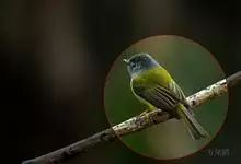 黑脸鹟莺:体长10厘米,是有特色的体小而多彩的莺鸟。粗眉纹,颏、喉及尾下覆羽黄色,脸罩黑,头顶及颈背灰色,上体绿,无翼纹,腹白。虹膜褐色;上嘴色深,下嘴肉色;脚偏绿色。…全部>>
