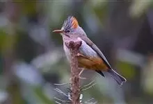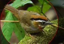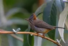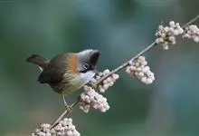 棕头雀鹛为鸦雀科,褐鹛属小型鸟类,体长10-13厘米。头顶栗褐色具黑色侧冠纹。上体茶黄色,飞羽外侧表面灰白色,内侧表面红棕色,内外二色之间夹有黑色。颏、喉白色具不明显的暗色纵纹,胸沾葡萄灰色,…全部>>
