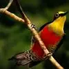 火尾绿鹛是莺科、绿鹛属小型鸟类,体长11-14厘米。上体绿色,头顶至枕具黑色鳞状斑,眼先和眼后黑色,眉纹黄绿色。两翅黑色具黄色和红色翅斑及白色端斑,极为醒目。中央一对尾羽绿色,外侧尾羽鲜红色。…全部>>